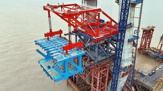 1100t架梁吊機崇啟大橋首秀